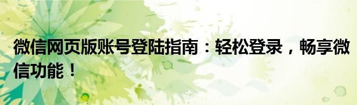 本文将为您详细介绍微信网页版账号登陆的步骤和注意事项,帮助您轻松登录微信网页版,畅享微信的各项功能。